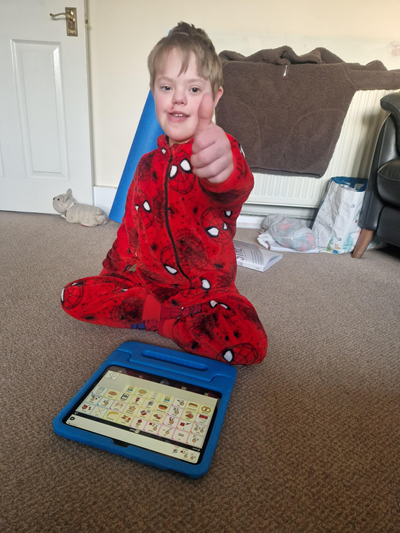 Alfie is determined to continue working with the SLT to improve his speech clarity, but in the meantime he is very grateful to have the option to use his iPad to communicate all the important – and not so important – things he would like to say! Thank you very much for making this possible for him.”