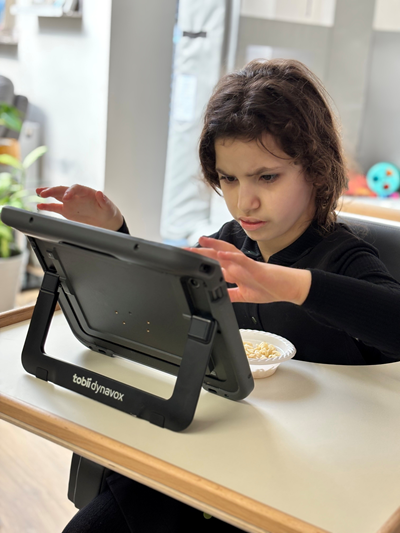 Ruchama attends a special school and works closely with a Speech and Language Therapist (SLT) who tells us that Ruchama can only articulate a few words inconsistently. She currently has the use of a school iPad but she cannot take this home with her, which effectively means she is leaving her voice in school each day. Without the use of a communication device she can become distressed as others do not understand what she wants.
